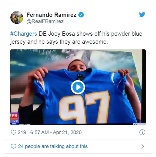 The Los Angeles Chargers, whose training camp is based in Costa Mesa, CA, will have a new look for the team uniforms in 2020.